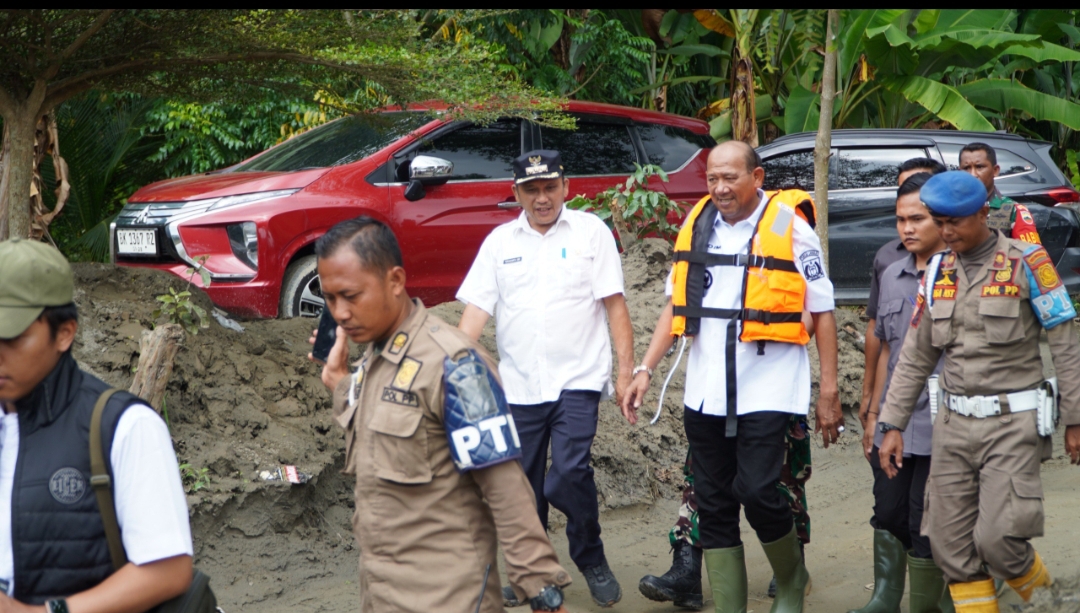 , Langkat – Bupati Langkat H. Syah Afandin, SH kembali menunjukkan komitmennya dalam penanganan banjir dengan turun langsung menemui warga yang terisolir. Rabu (3/12/2025) sore, ia mendatangi Desa Pantai Cermin, Kecamatan Tanjung Pura, meski akses jalan menuju lokasi masih terputus akibat banjir yang belum surut.
