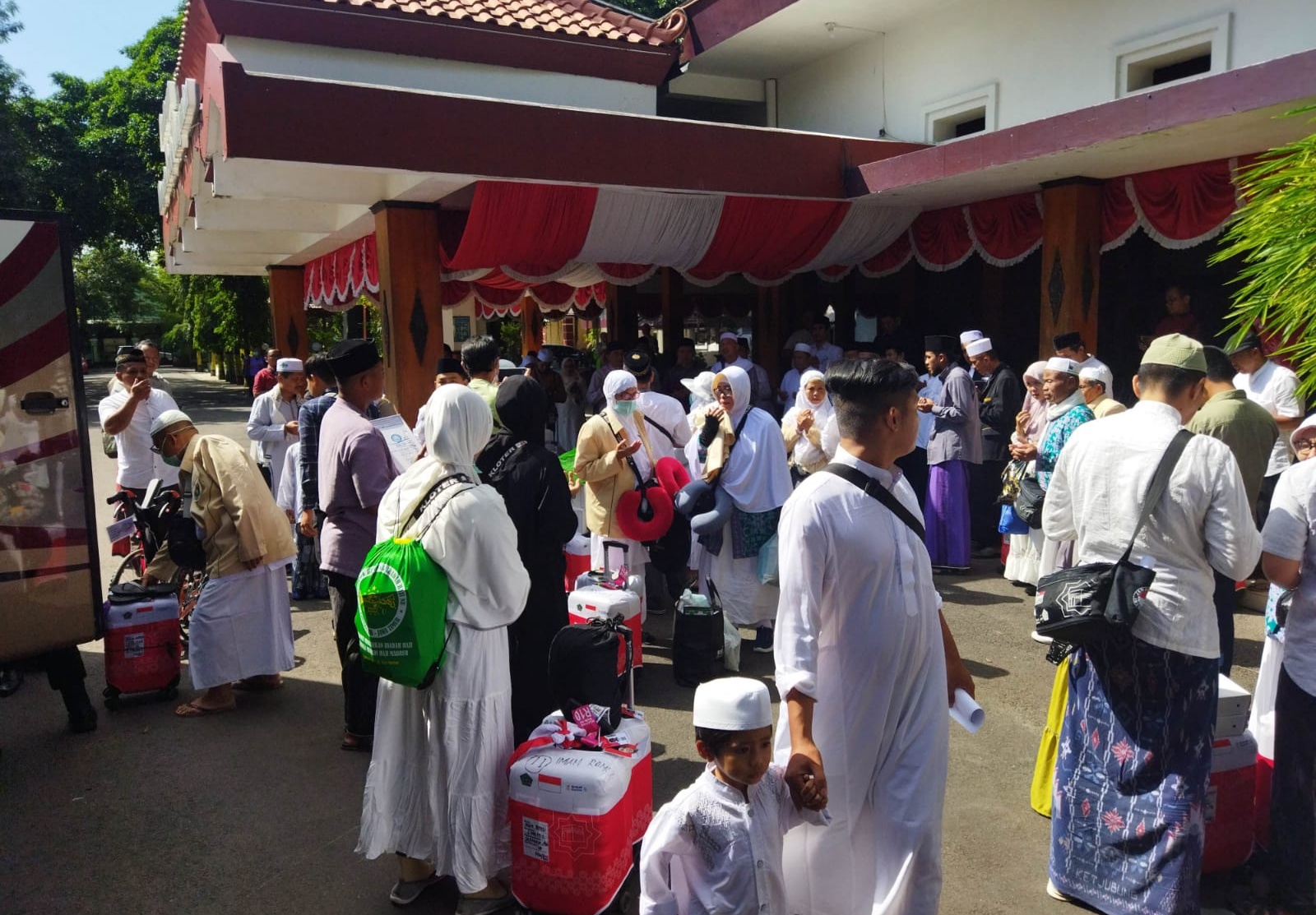 Untuk keluarga yang akan menjemput jemaah haji hanya bisa mendekat sampai depan komplek Pendapa Manggala Praja Nugraha. Sedangkan yang bisa masuk hanya satu mobil dari setiap keluarga jemaah untuk menjemput jemaah.