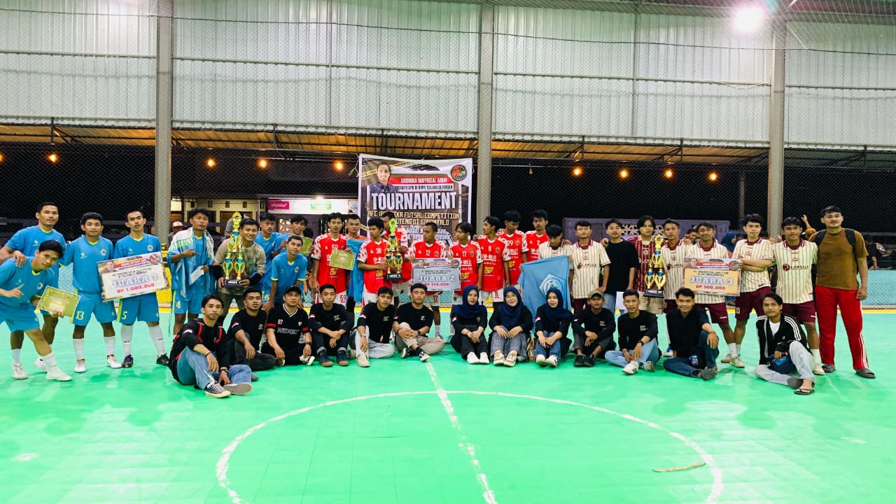 Gorontalo – Turnamen Andhika Futsal Competition Se-Sulawesi Tengah sukses digelar di Gorontalo dengan menghadirkan antusiasme tinggi dari mahasiswa perwakilan kabupaten se-Sulawesi Tengah yang menempuh pendidikan di provinsi Gorontalo.