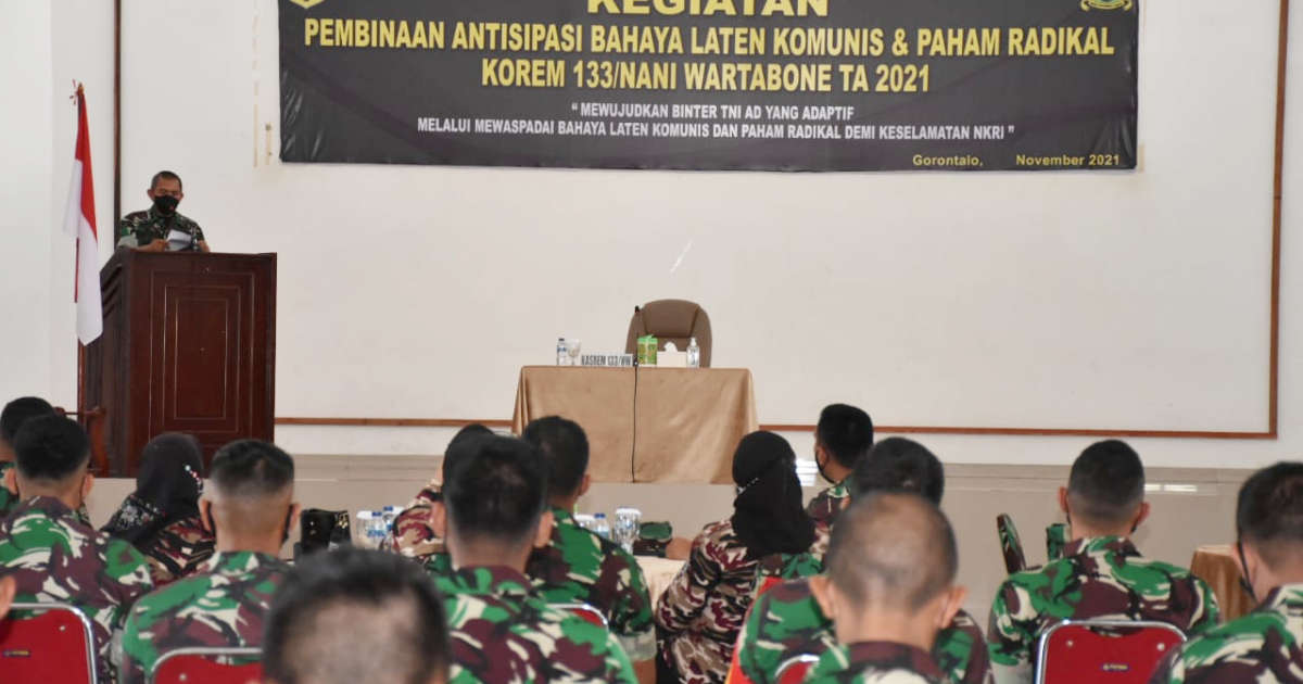 , Gorontalo – Korem 133/Nani Wartabone (NW) menggelar Pembinaan Antisipasi Bahaya Laten Komunis (Balatkom) dan Paham Radikal.