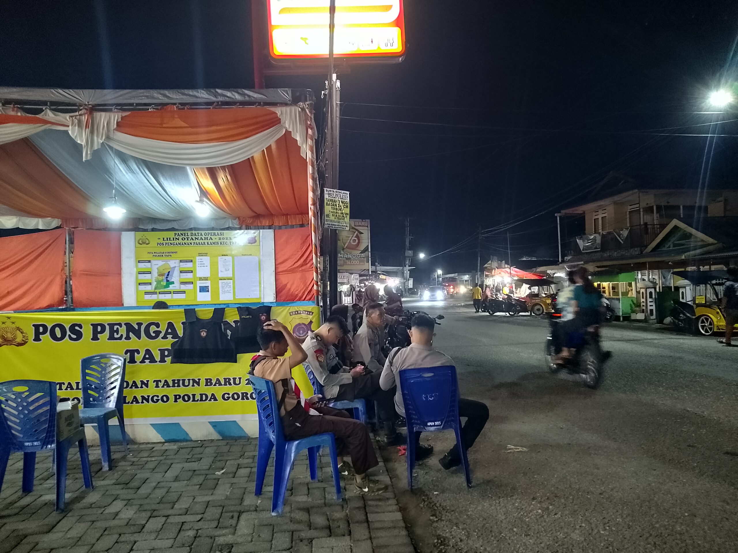Bone Bolango – Kondisi arus lalu lintas Tapa, Bonebol jelang pergantian malam tahun baru 2023-2024 terlihat kondusif.