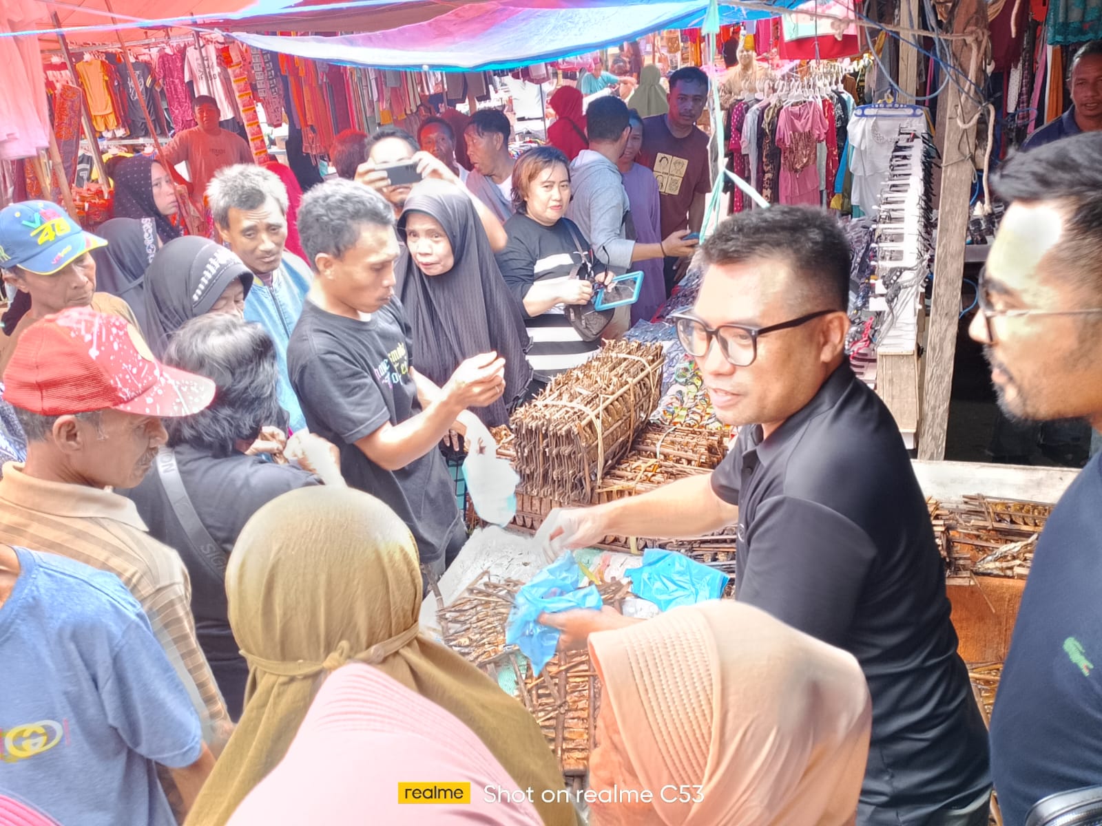 Bone Bolango- Hendra Saputra Koniyo (HSK) melakukan blusukan di Pasar Kamis Tapa, Kamis (23/05/2024).