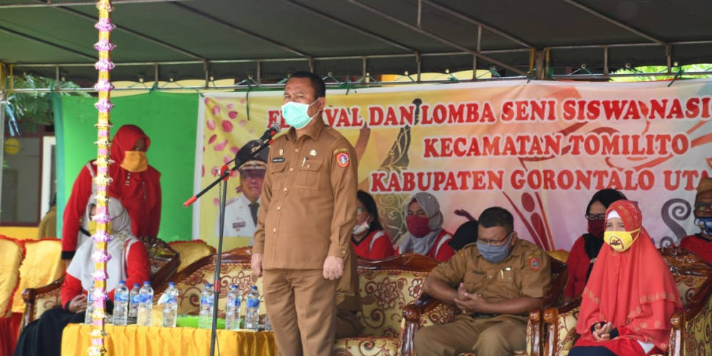 Demikian disampaikan Sekretaris Daerah (Sekda) Kabupaten Gorontalo Utara (Gorut), Ridwan Yasin ketika menjadi inspektur upacara pada pembukaan Festival Lomba Seni Siswa Nasional (FLS2N) tingkat Kecamatan Tomilito, dipusatkan di SDN 5 Tomilito, Selasa (21/7/2020).