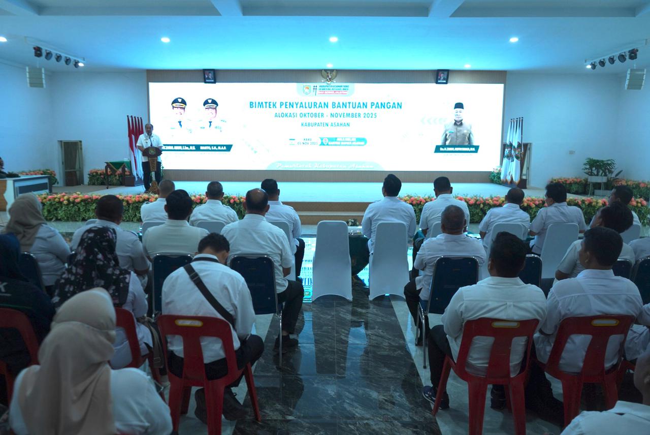 Asahan – Ketersediaan pangan yang cukup dan merata menjadi perhatian serius Pemerintah Kabupaten Asahan dalam menjaga kesejahteraan masyarakat. Dalam konteks tersebut, Bupati Asahan Taufik Zainal Abidin, S.Sos., M.Si. membuka secara resmi Bimbingan Teknis (Bimtek) Penyaluran Bantuan Pangan Periode Oktober–November 2025 di Aula Melati Kantor Bupati Asahan, Rabu (05/11/2025). Kegiatan ini diikuti oleh aparatur kelurahan dan desa dari seluruh wilayah Kabupaten Asahan yang akan bertugas sebagai petugas penyalur bantuan bagi masyarakat penerima manfaat. Melalui kegiatan ini, pemerintah berupaya memastikan proses distribusi bantuan pangan berjalan tertib, transparan, dan tepat sasaran.