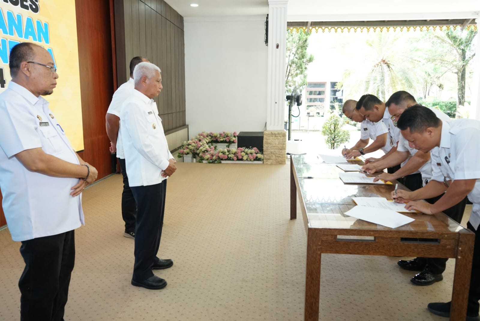 Sebelum membuka Rakorpem Bupati Asahan di dampingi oleh Wakil Bupati Asahan menandatangani perjanjian kinerja tahun 2024 di awali oleh Sekretaris Daerah Kabupaten dan di ikuti oleh seluruh OPD se-Kabupaten Asahan serta Camat se-Kabupaten Asahan
