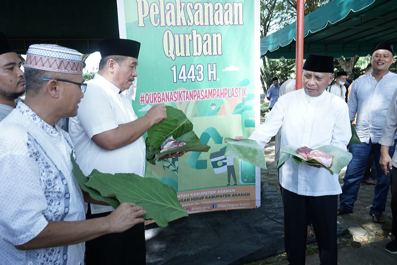 , Asahan – PEMERINTAH Kabupaten (Pemkab) Asahan menghimbau masyarakat untuk menggunakan daun pisang, jati dan sejenisnya dalam membungkus daging hewan qurban pada perayaan hari raya Idul Adha 1443 H.