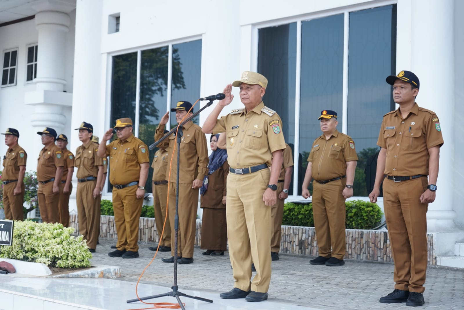 , Asahan – Bupati Asahan H. Surya BSc memimpin apel gabungan bulan November tahun 2023 di halaman kantor Bupati Asahan, Senin (06/11/2023). Tampak hadir Asisten, Staff Ahli Bupati, OPD, Sekretaris OPD, Camat Kota Kisaran Barat, Camat Kota Kisaran Timur dan ASN di lingkungan Kabupaten Asahan