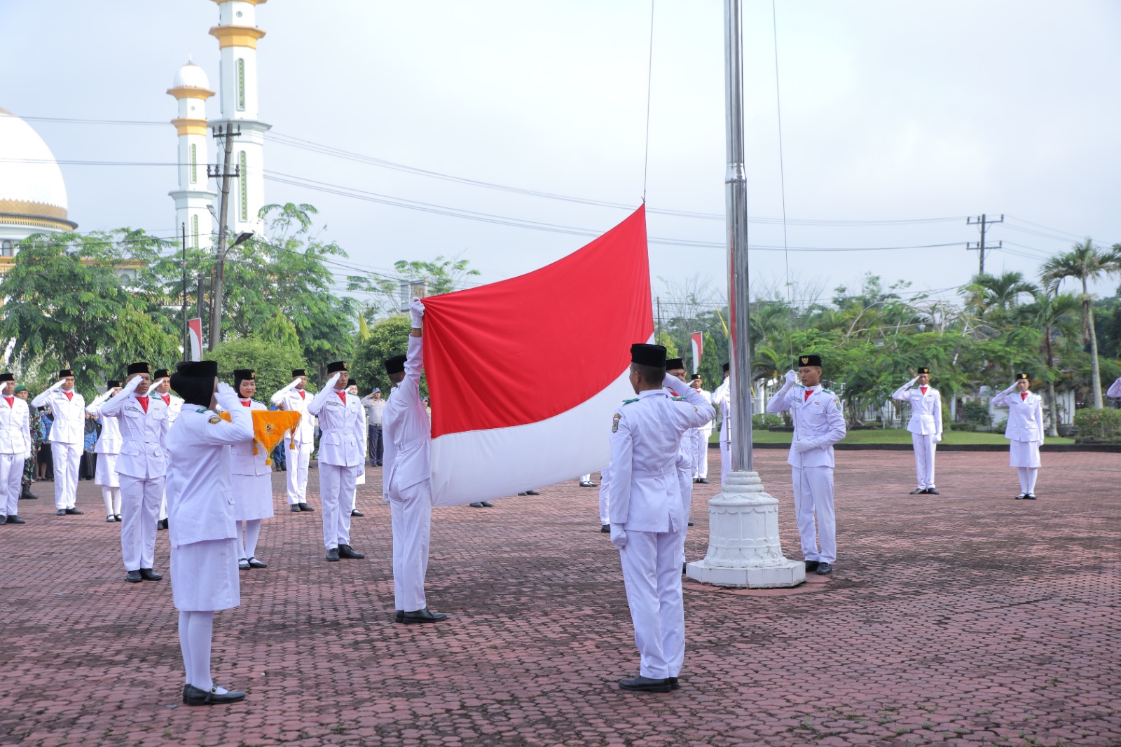 Asahan – Bupati Asahan H. Surya, BSc memimpin upacara Hari Kelahiran Pancasila di Halaman Kantor Bupati Asahan, Sabtu (01/06/2024). Pada upacara ini, Dandim 0208/Asahan, mewakili Danlanal TBA, mewakili Danyon 126/KC, mewakili Kapolres Asahan, mewakili Ketua PN Kisaran Sekretaris Daerah Kabupaten Asahan, Para Asisten, Staf Ahli, OPD, ASN di Lingkungan Pemerintah Kabupaten Asahan, TNI-Polri, Ketua Etnis dan OKP mengikuti upacara tersebut.