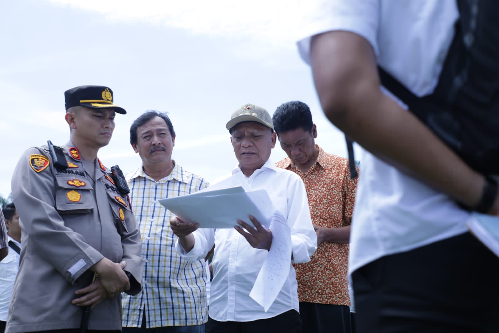 , Asahan – Bupati Asahan Surya bersama Kapolres Asahan AKBP Roman Smaradhana Elhaj meninjau lokasi pembangunan Mako Polsek Aek Kuasan di Kecamatan Aek Kuasan, Rabu (8/2/2023).