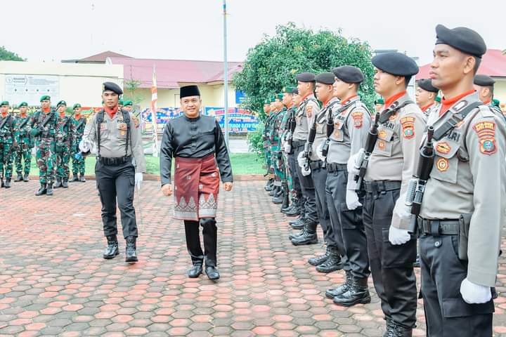Apel HUT ke-77 Bhayangkara tersebut dihadiri oleh Forkopimda Kabupaten Batu Bara.