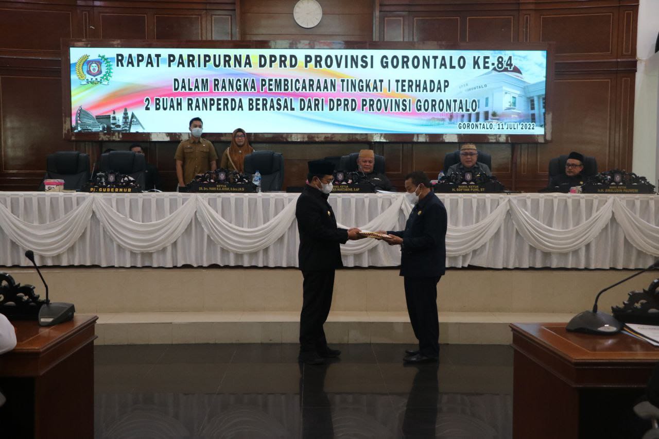 DAILYPOST.ID , Gorontalo- DPRD Provinsi Gorontalo menyepakati 2 Rancangan Peraturan Daerah (Raperda) usul inisiatif Pemerintah Provinsi Gorontalo untuk dibahas.