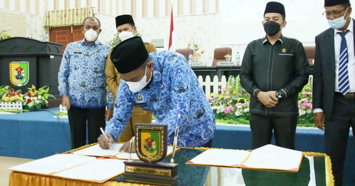 , Serdang Bedagai – Bupati Serdang Bedagai (Sergai) H. Darma Wijaya didampingi Wabup H Adlin Umar Yusri Tambunan, ST, M.SP hadir dalam rapat paripurna DPRD dengan agenda Pengesahan Rancangan Peraturan Daerah (Ranperda) Tentang APBD Kabupaten Sergai Tahun Anggaran (TA) 2022.