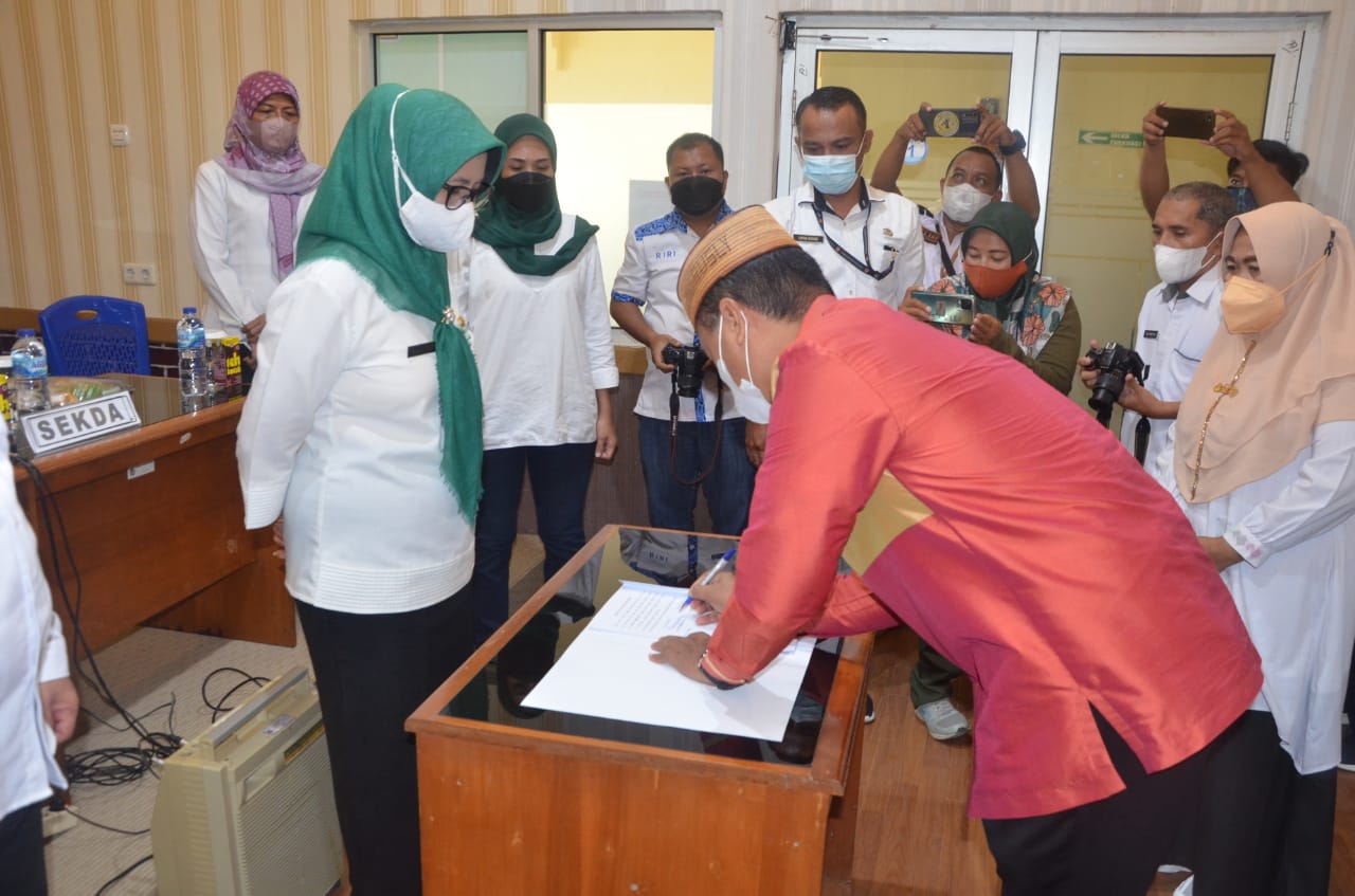 Pelantikan dr. Rusli sebagai Ketua Dewan Pengawas baru dilakukan Sekretaris Daerah Kabgor, Hadijah U. Tayeb di Ruang Mooluli, RSUD Dunda Limboto, Rabu (19/1/2022).