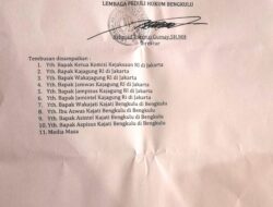 Bengkulu, DailyPost|| Achmad Tarmizi Gumay.SH MH dan rekan laporkan Dugaan Tindak Pidana atas pembebasan lahan merah putih ke kejaksaan tinggi Bengkulu pada hari kamis 12/01/2023, dengan nomor surat: 027/LPHB/XI/2023, laporan diterima langsung oleh Humas Kejaksaan tinggi Bengkulu.