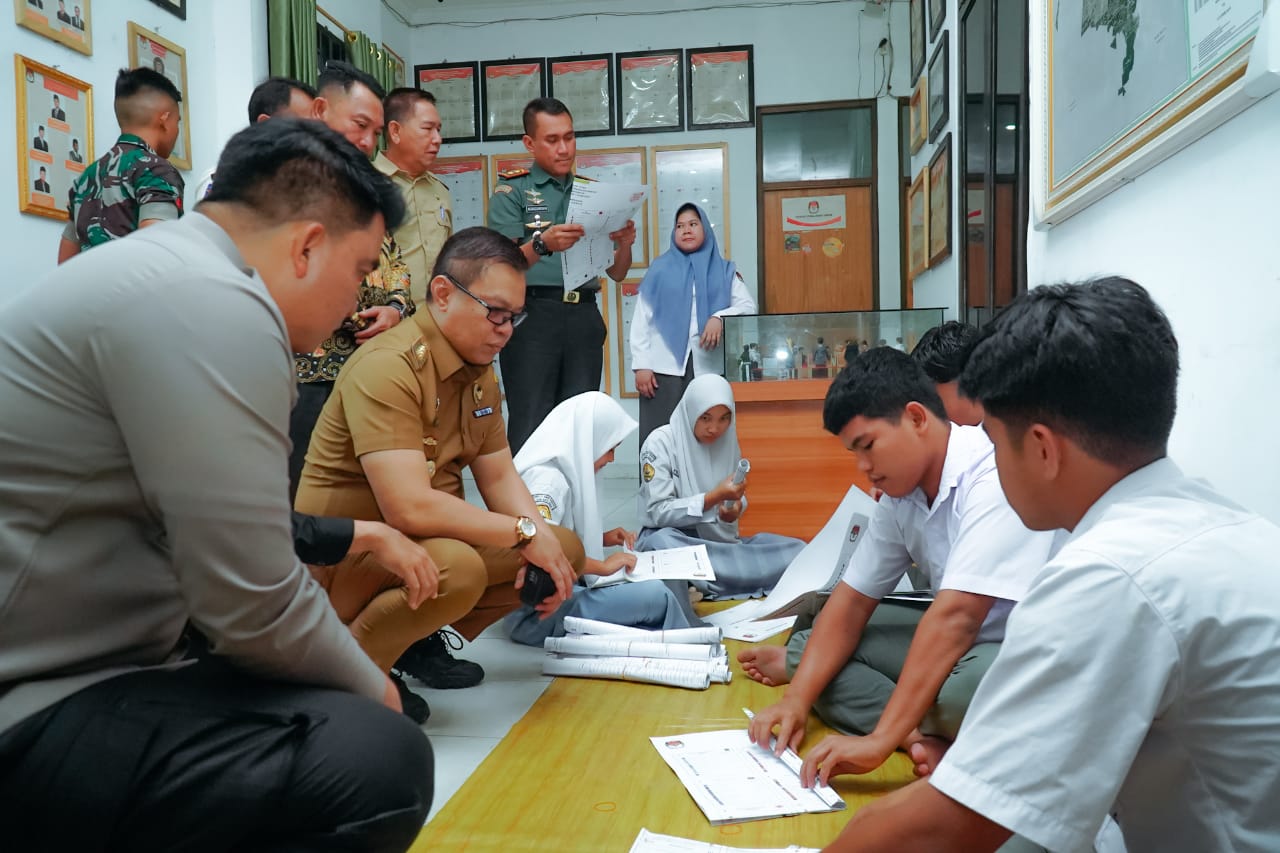 Pasca menggelar rapat, Forkopimda Kabupaten Asahan meninjau secara langsung pengepakan logistik surat suara di kantor KPU Kabupaten Batu Bara. (Daily/Wanty)