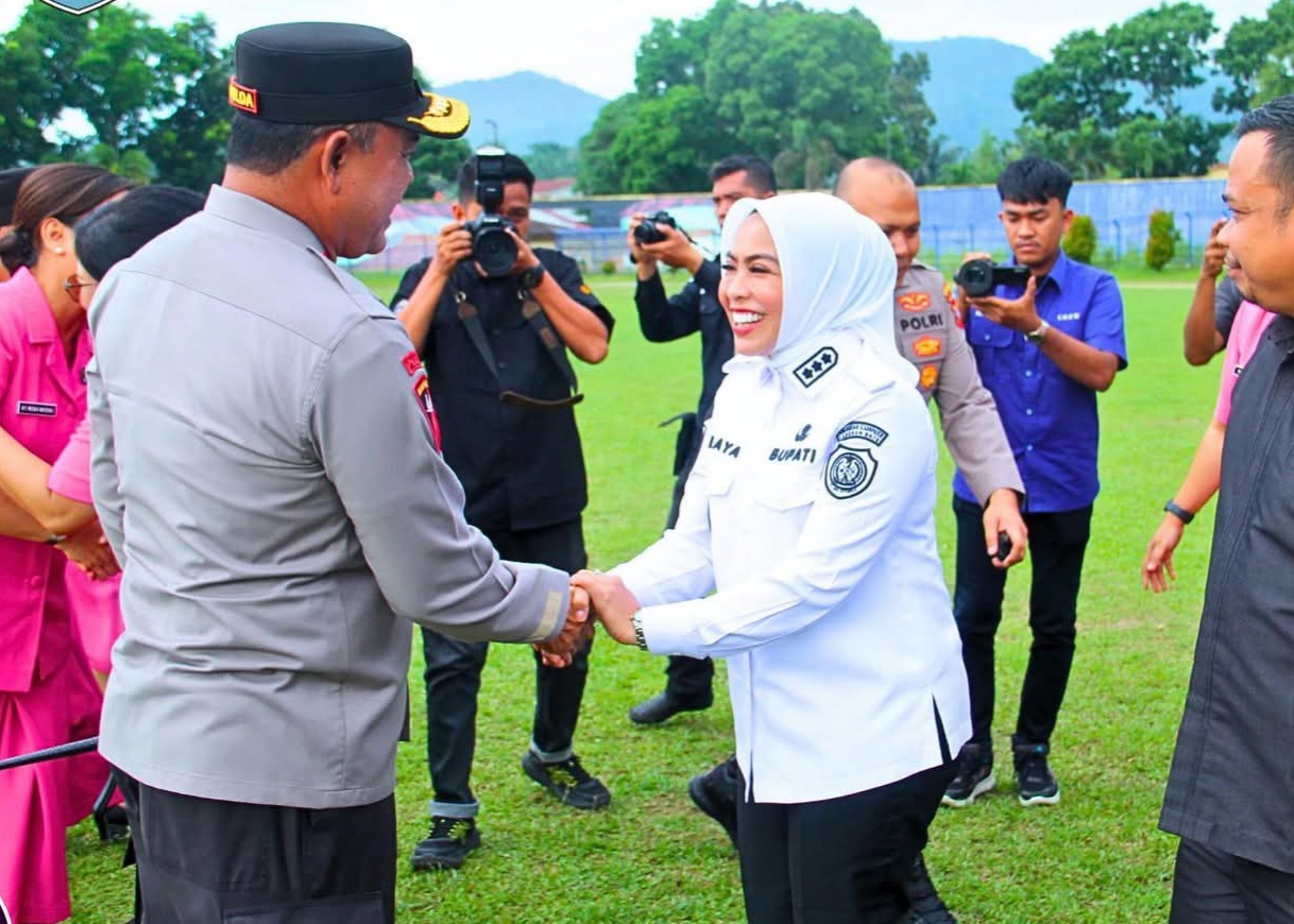 Asahan – Bupati Labuhanbatu dr. Hj. Maya Hasmita, Sp.OG, MKM didampingi Forkopimda Labuhanbatu menyambut kedatangan Kepala Kepolisian Daerah Sumatera Utara Irjen. Pol. Whisnu Hermawan Februanto, S.I.K., M.H., Rabu (11/06)