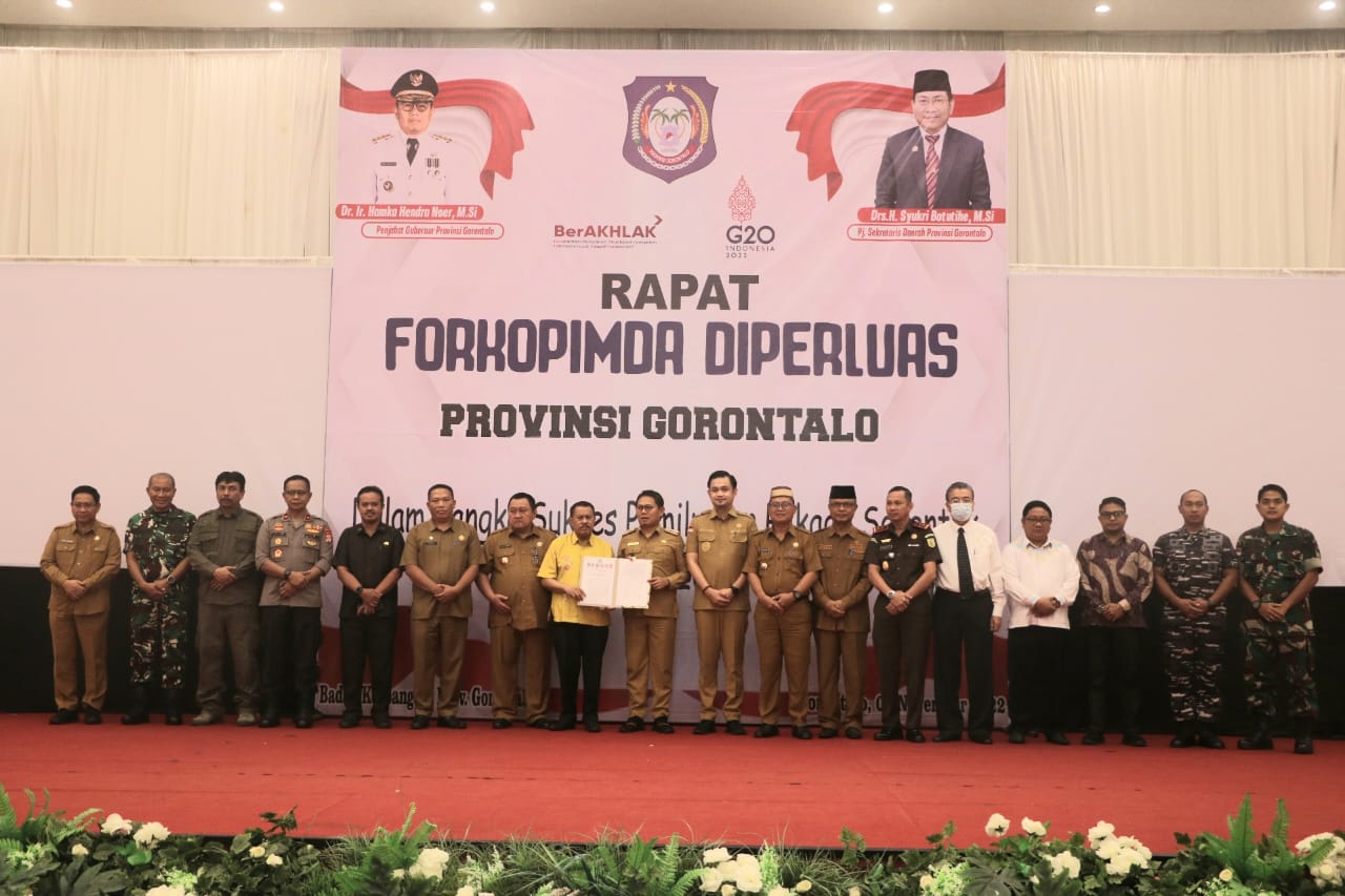 Hal tersebut ditandai dengan penandatanganan kesepahaman antar seluruh anggota Forkopimda Provinsi Gorontalo, yang berlangsung di Grand Palace Convention Center. Senin (07/11/2022).