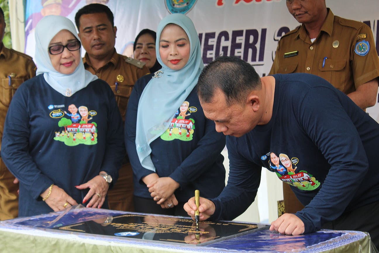 Kegiatan tersebut dirangkai dengan penandatanganan prasasti peresmian gedung SD Negeri 30 Bilah Barat. (Daily/Wanty)
