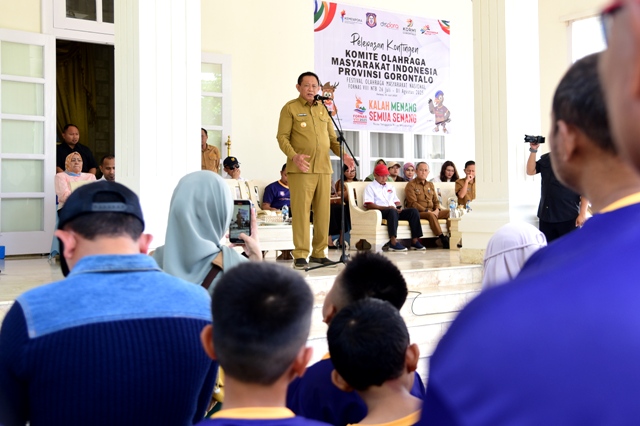 Gorontalo – Gubernur Gorontalo Gusnar Ismail meminta Komite Olahraga Masyarakat Indonesia (Kormi) Provinsi Gorontalo untuk lebih aktif menggelorakan olahraga rekreasi di tengah masyarakat. Pesan tersebut disampaikannya saat melepas secara resmi 174 anggota kontingen Kormi Gorontalo yang akan berlaga di Festival Olahraga Masyarakat Nasional (Fornas) VIII, Selasa (22/07/2025), di rumah jabatan gubernur.