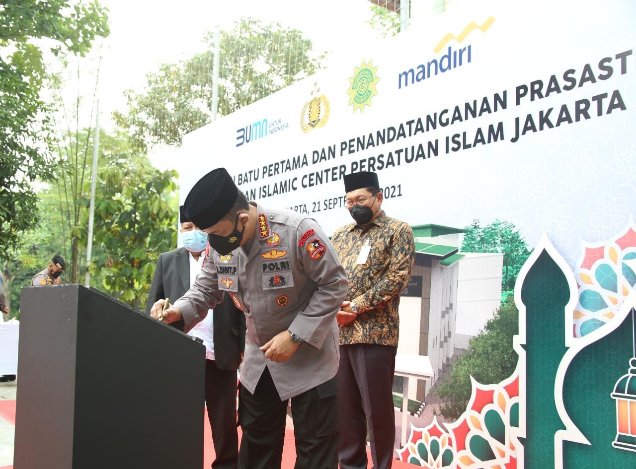 DAILYPOST.ID , Jakarta – Kapolri Jenderal Listyo Sigit Prabowo menghadiri acara peletakan batu pertama pembangunan Islamic Center Persatuan Islam (PERSIS) DKI Jakarta di Jalan Bambu Apus, Cipayung, Jakarta Timur, Selasa (21/9/2021).