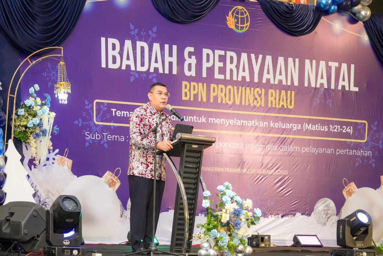 ,Pekanbaru – Natal dinilai menjadi momentum untuk memperkuat nilai spiritual dan etika kerja dalam menjalankan tugas pelayanan publik. Pada perayaan Natal yang diselenggarakan Kantor Wilayah (Kanwil) BPN Provinsi Riau, Wakil Menteri Agraria dan Tata Ruang/Wakil Kepala Badan Pertanahan Nasional (Wamen ATR/Waka BPN), Ossy Dermawan, mengajak seluruh jajaran untuk terus menjaga semangat pengabdian di tengah berbagai tantangan yang dihadapi.