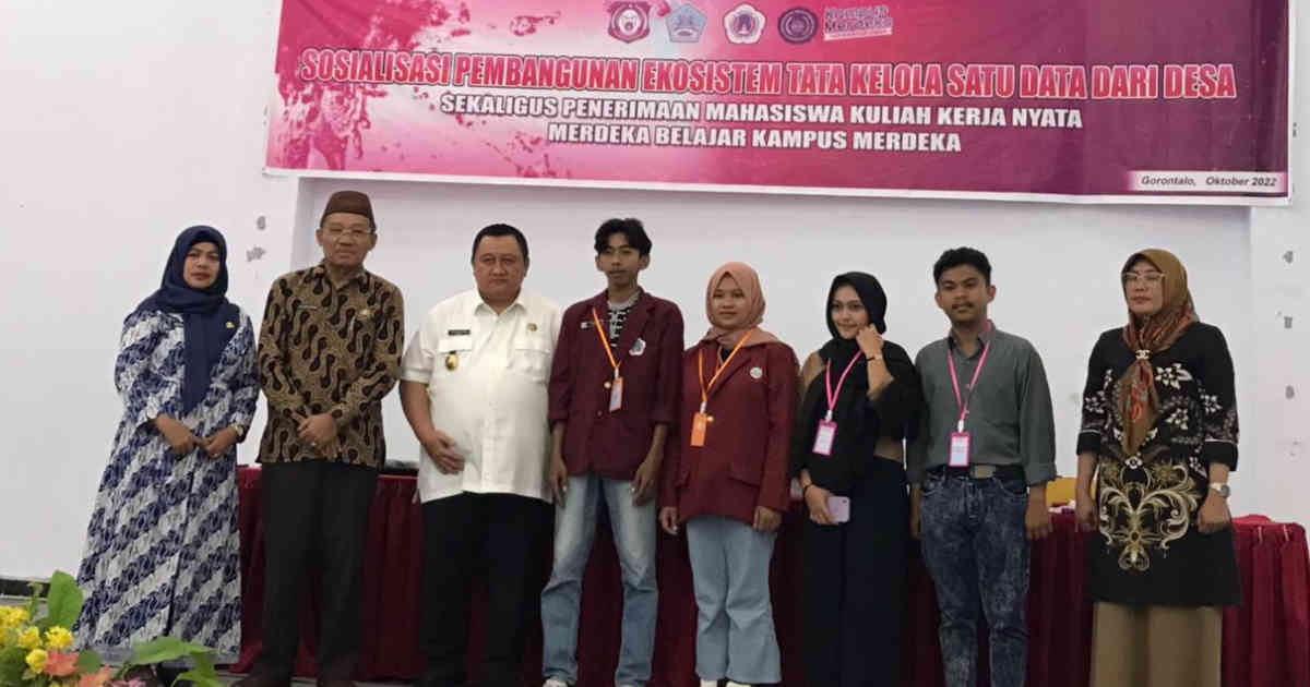 , Boalemo- Penjabat Bupati Boalemo Hendriwan membuka secara resmi kegiatan Sosialisasi Ekosistem Tata Kelola Data Desa dan Sekaligus Penerimaan Mahasiswa KKN Merdeka Belajar Kampus Merdeka di Gedung Putra Tunggal, Jum’at (7/10/2022).