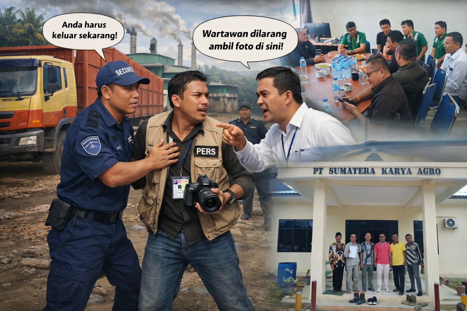 Namun, oknum Humas PT SKA secara tiba-tiba melarang pengambilan foto tersebut dan memerintahkan petugas keamanan (satpam) untuk mengusir wartawan dari lokasi.