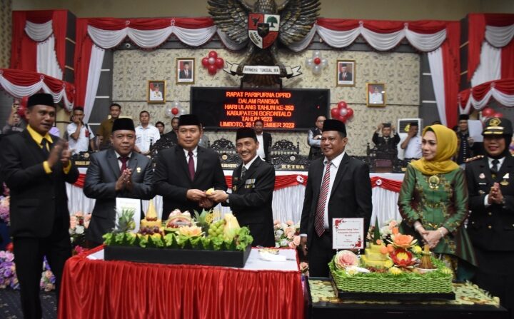 , Limboto – Bupati Gorontalo, Prof. Nelson Pomalingo, mengumumkan prestasi gemilang Kabupaten Gorontalo dalam sidang paripurna peringatan HUT Kabupaten Gorontalo ke-350 tahun di gedung DPRD Kabupaten Gorontalo pada Minggu (26/11/2023). Prestasi tersebut mencakup berbagai sektor, sejalan dengan Visi dan Misi Kabupaten Gorontalo tahun 2021-2026, “Gorontalo Gemilang dan Mandiri, menuju Masyarakat Madani.”