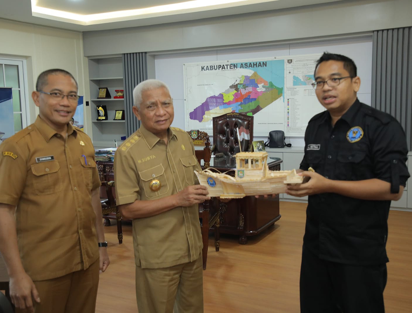 , Asahan – Bupati Asahan Surya menerima audiensi Kepala BNN Kabupaten Asahan yang baru Adrea Retha Zulhelfi di ruang kerja rumah dinas Bupati Asahan, Selasa (24/10/2023).