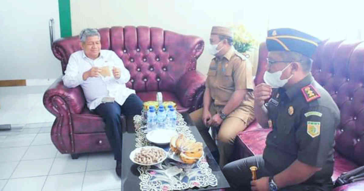 ,Boalemo- Sekretaris Daerah Sherman Moridu, mendampingi Kajari Tilamuta Ahmad Muchlis, menyambut kunjungan Inspektur III Kejaksaan Agung Firdaus Dewilmar, di kantor Kejaksaan Tilamuta, selasa (15/3/2022).