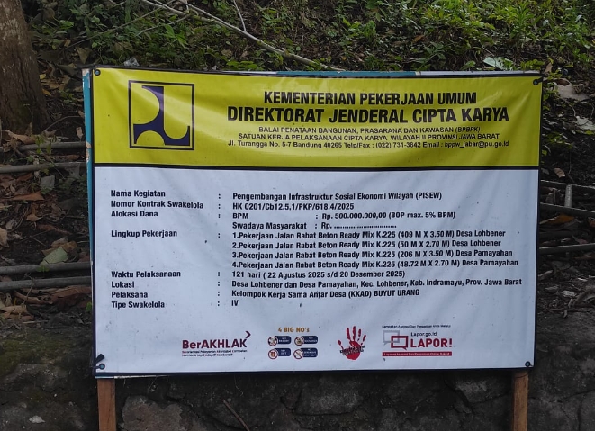 , Indramayu, Jum’at 24 Oktober 2025 – Program Pengembangan Infrastruktur Sosial Ekonomi Wilayah (PISEW) yang diinisiasi oleh Kementerian Pekerjaan Umum melalui Direktorat Jenderal Cipta Karya telah membawa angin segar bagi masyarakat Desa Lohbener dan Desa Pemayahan, Kecamatan Lohbener, Kabupaten Indramayu. Proyek pembangunan jalan rabat beton ini disambut dengan antusiasme tinggi oleh warga setempat karena dinilai dapat meningkatkan aktivitas perekonomian.