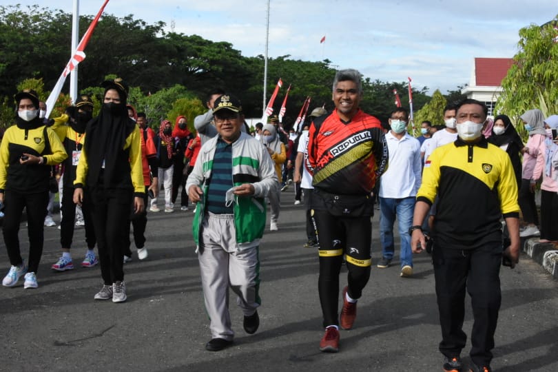, Gorontalo Utara – Serangkaian dengan peringatan Hari Ulang Tahun Republik Indonesia yang ke 76, Pemerintah Daerah Kabupaten Gorontalo Utara melaksanakan kegiatan jalan sehat.