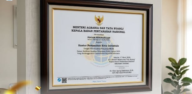Gorontalo – Kantor Wilayah Badan Pertanahan Nasional (Kanwil BPN) Provinsi Gorontalo memberikan apresiasi kepada Kantor Pertanahan (Kantah) Kota Gorontalo atas komitmennya dalam memberikan pelayanan terbaik kepada masyarakat.