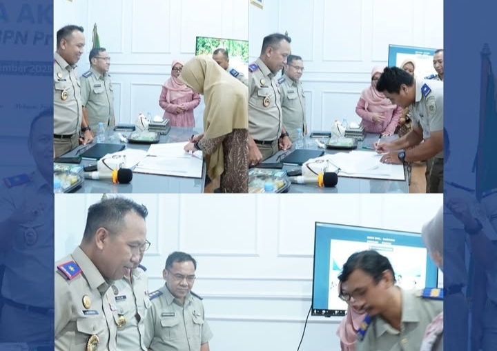 Gorontalo – Kepala Kantor Wilayah Badan Pertanahan Nasional (BPN) Provinsi Gorontalo baru saja melaksanakan penandatanganan Berita Acara Komitmen Penyelesaian Pekerjaan Tahun Anggaran 2026 bersama seluruh Kepala Kantor Pertanahan kabupaten/kota se-Provinsi Gorontalo. Kegiatan ini menandai keseriusan dan komitmen bersama untuk memastikan seluruh program dan kegiatan pertanahan dapat dilaksanakan tepat waktu, berkualitas, dan sesuai dengan ketentuan yang berlaku.