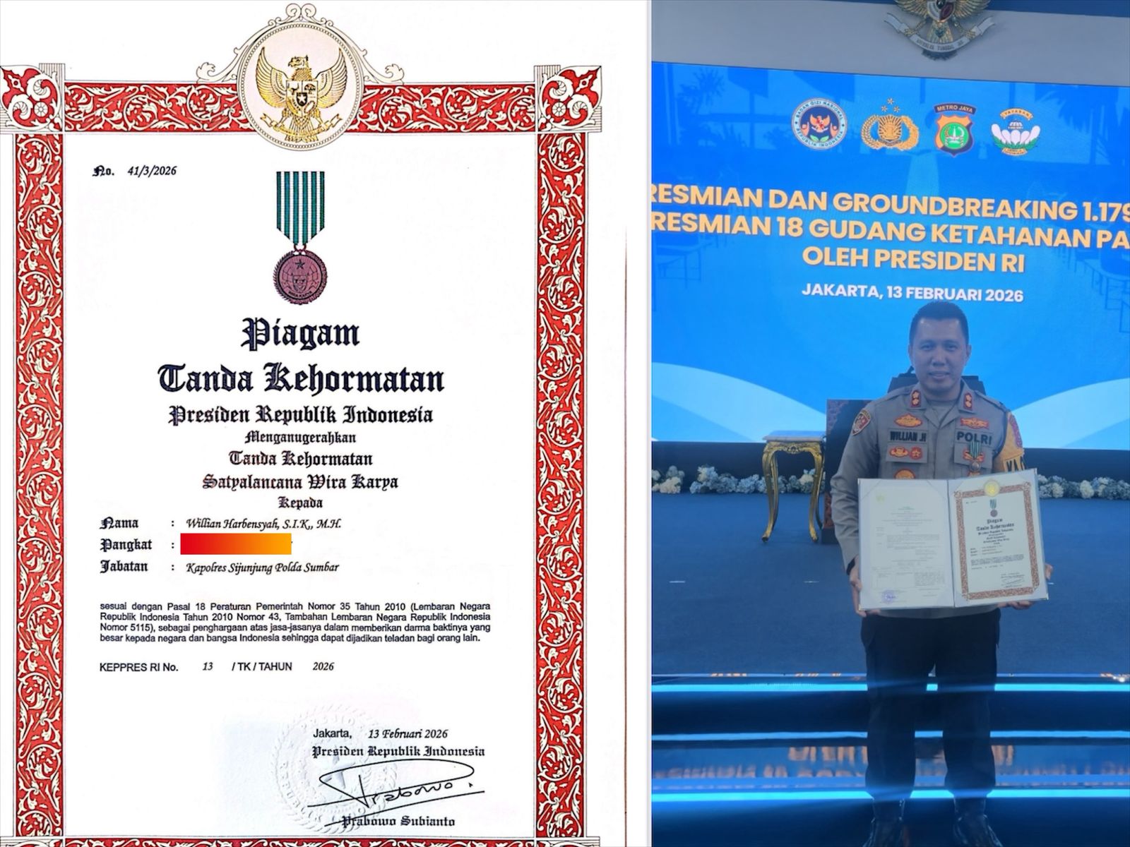 Salah satu penerima penghargaan bergengsi tersebut adalah Willian Harbensyah, Kapolres Sijunjung dari Polda Sumatera Barat. Penghargaan ini menjadi bentuk apresiasi negara atas peran aktif beliau dalam mendukung implementasi program ketahanan pangan dan pelayanan publik di wilayah hukumnya.