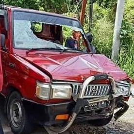 , Minsel – Kecelakaan lalulintas terjadi. Sebuah mobil Toyota Kijang jenis Pick Up “Menanduk” sepeda motor matic, di ruas Jalan Trans Sulawesi, Kelurahan Kawangkoan Bawah, Kecamatan Amurang Barat, pada Minggu siang (07/03/2021), sekitar pkl. 13.00 WITA.