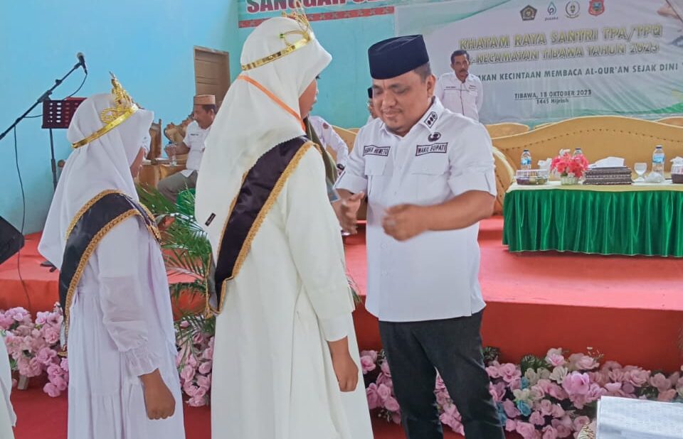 , Gorontalo– Wakil Bupati Gorontalo, Hendra Hemeto, turut hadir memeriahkan acara Khatam Raya Santri TPQ Tingkat Kecamatan Tibawa Tahun 2023. Acara berlangsung di Gedung Sanggar Seni Budaya Desa Dunggala pada Rabu (18/10/2023).