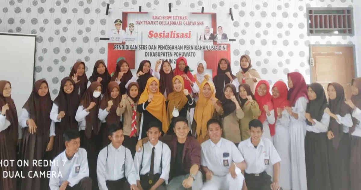 , Pohuwato- Melalui rangkaian kegiatan Gebyar SMS, Forum Puspa yang merupakan organisasi besutan Dinas P3AP2KB bersama Educare Institute dibidang pendidikan dan LBH Wahana Keadilan di Bidang Hukum, menggelar edukasi terkait dengan pendidikan seks dan pernikahan anak usia dini, berlokasi di SMA 1 Randangan, Jum’at (18/3/2022).