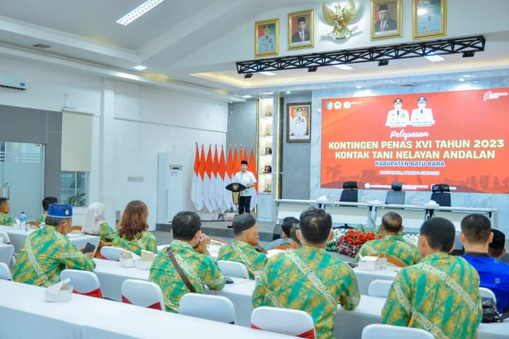 , Batu Bara – Bupati Batu Bara Zahir melepas keberangkatan kontingen Pekan Nasional (Penas) XVI Kontak Tani Nelayan Andalan (KTNA) Kabupaten Batu Bara di rumah dinas Bupati Batu Bara, Komplek Perumahan Inalum, Kecamatan Sei Suka, Kabupaten Batu Bara, Kamis (8/6/2023) malam.