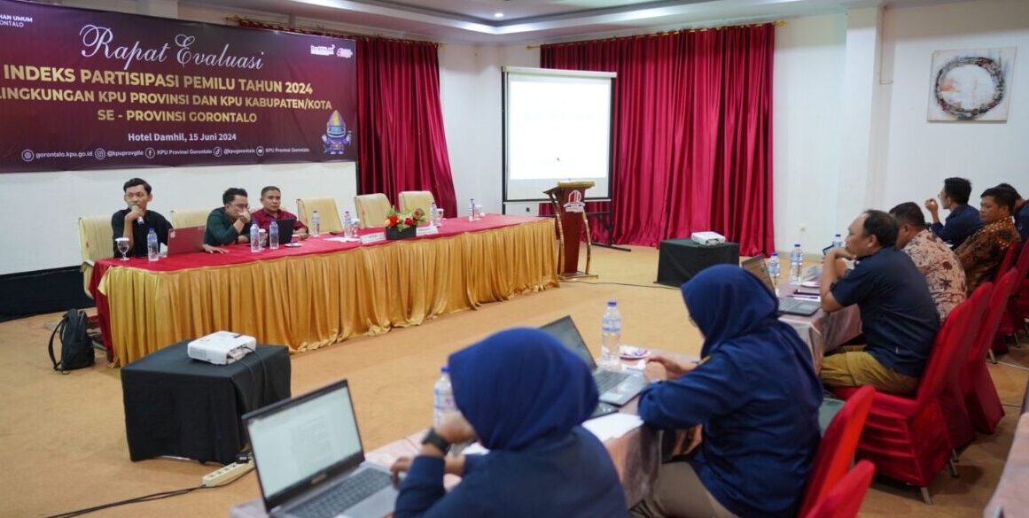 Gorontalo — Dalam rangka meningkatkan partisipasi pemilih dalam pemilu, KPU Provinsi Gorontalo mengadakan Rapat Evaluasi Indeks Partisipasi Pemilu. Acara ini berlangsung di Hotel UTC Damhill, Universitas Negeri Gorontalo (UNG), Sabtu (15/06/2024), dan menghadirkan dua pemateri utama yang kompeten di bidangnya.