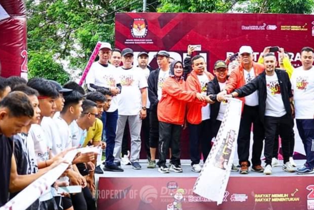 Labuhanbatu – Komisi Pemilihan Umum (KPU) Kabupaten Labuhanbatu menggelar acara FUN RUN dan Senam Sehat tahun 2024 yang dihadiri langsung oleh Pelaksana Tugas (Plt) Bupati Labuhanbatu Hj. Ellya Rosa Siregar, S.Pd, MM dilapangan Ikabina Rantauprapat, Jalan MH Thamrin, Rantauprapat, Kecamatan Rantau Utara. Minggu (24/11).