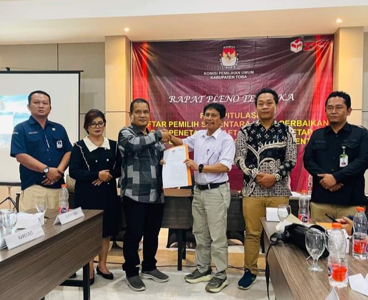 Toba – Melalui Keputusan KPU Kabupaten Toba Nomor 1262 Tahun 2024, Komisi Pemilihan Umum Kabupaten Toba menetapkan jumlah Daftar Pemilih Tetap (DPT) pada Pemilihan Gubernur dan Wakil Gubernur serta Bupati dan Wakil Bupati pada Pilkada serentak 27 November mendatang.