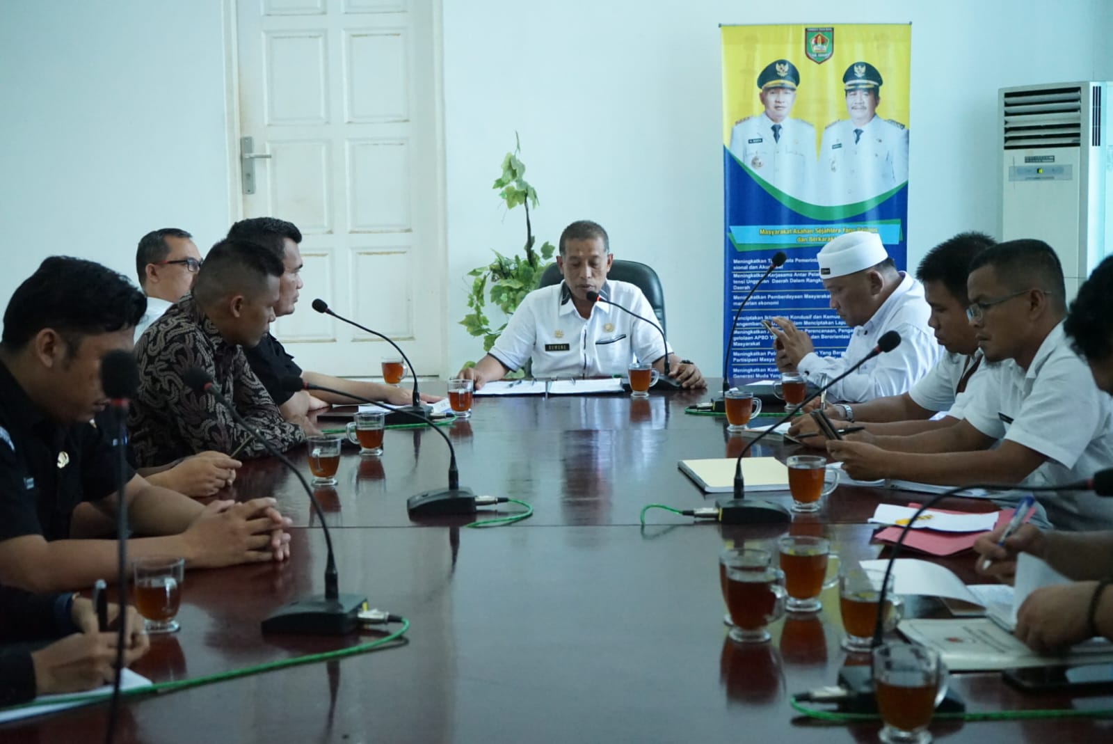, Asahan – Asisten Pemerintah dan Kesejahteraan Rakyat Setdakab Asahan Buwono Prawana menerima audiensi Komisi Pemilihan Umum (KPU) Kabupaten Asahan di ruang Kenanga, kantor Bupati Asahan, Rabu (10/5/2023).