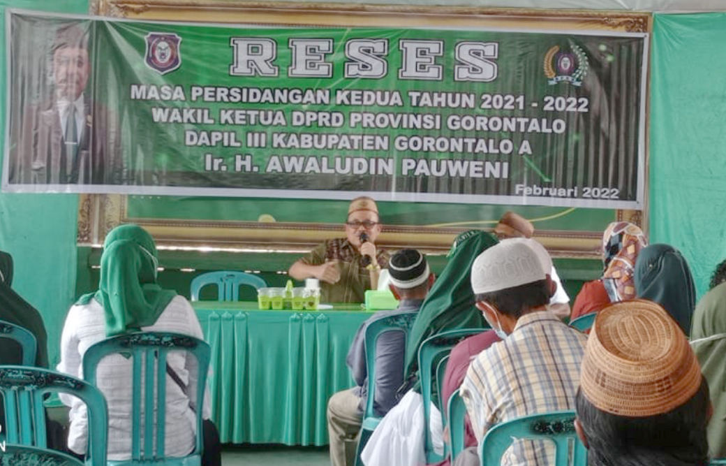 DAILYPOST.ID , Gorontalo- Anggota DPRD Provinsi Gorontalo, Awaludin Pauweni melaksanakan reses hari pertamanya untuk masa sidang kedua tahun 2021-2022 di Kelurahan Hunggaluwa, Kecamatan Limboto, Kabupaten Gorontalo, Selasa (08/02/2022).