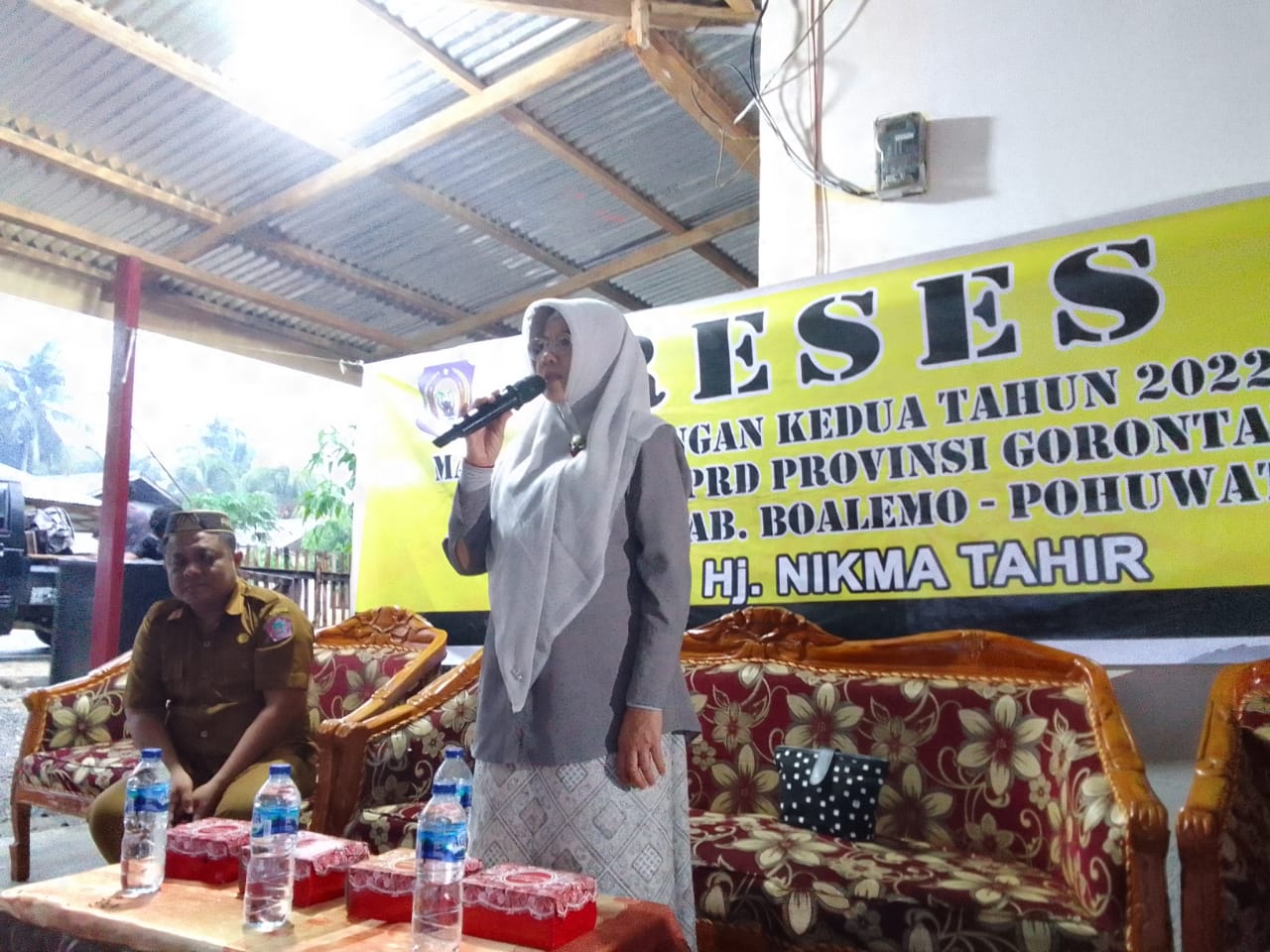 , Gorontalo – Reses hari kedua Wakil Ketua Komisi IV, Dewan Perwakilan Rakyat Daerah (DPRD) Provinsi Gorontalo, Nikma Tahir, yang masuk Dapil VI Kabupaten Boalemo-Pohuwato, menggelar pertemuan dengan mayarakat di Desa Kemiri, Kecamatan Paguat, Kabupaten Pohuwato, Selasa (07/02/2023).