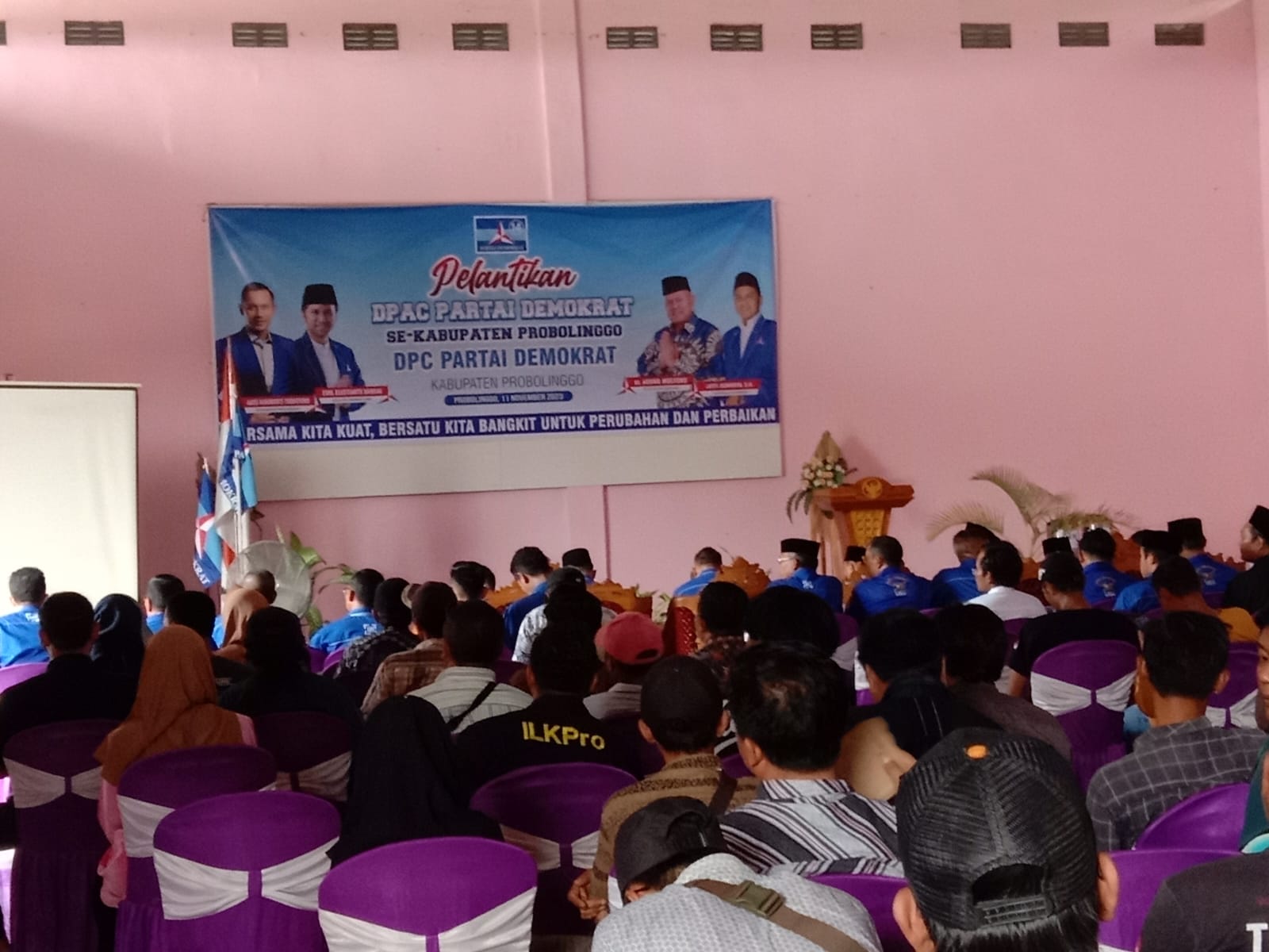 , Probolinggo – Dewan Pimpinan Cabang (DPC) Partai Demokrat Kab Probolinggo menggelar acara Pelantikan Dewan Pimpinan Anak Cabang (DPC) 24 Kecamatan sekaligus Bimtek pelatihan badan saksi Pemilu 2024.