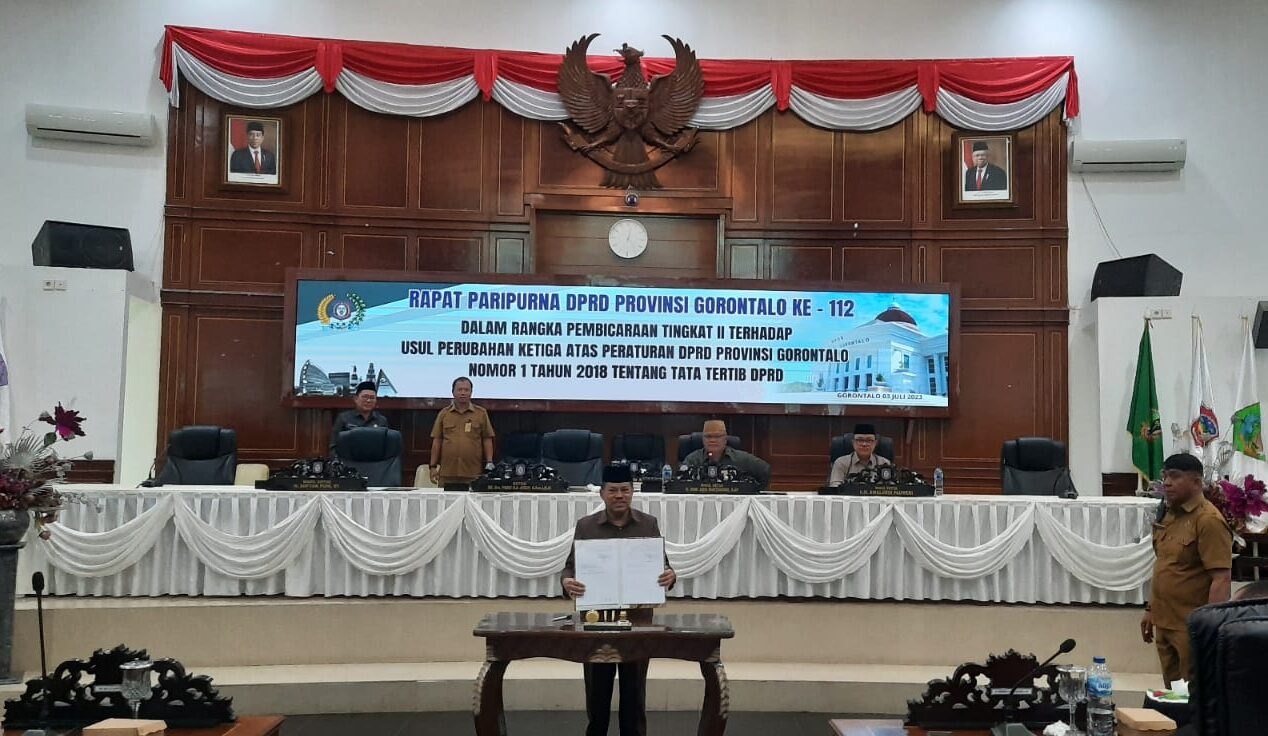 , Gorontalo- Rapat paripurna ke-112 DPRD Provinsi Gorontalo menjadi momen penting dalam mengusulkan perubahan ketiga atas Tata Tertib (Tatib) DPRD berdasarkan Peraturan DPRD Nomor 1 Tahun 2018, Senin (03/07/2023).