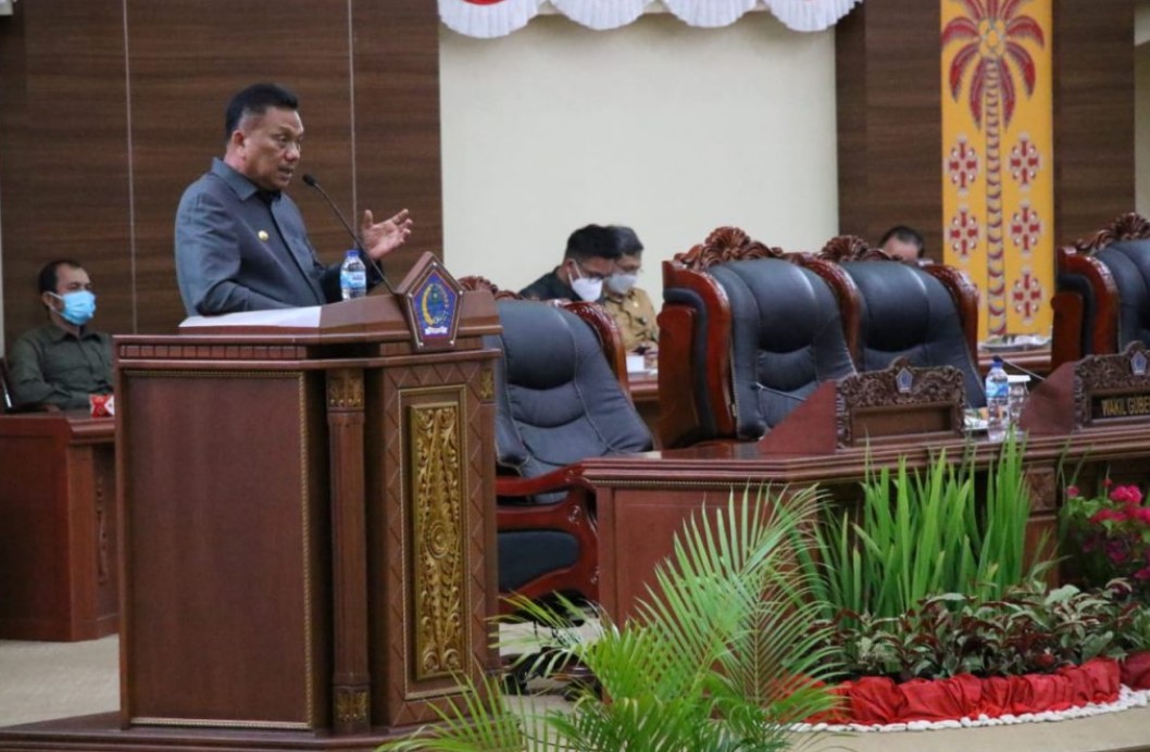 , Sulut – Gubernur Sulawesi Utara Olly Dondokambey menghadiri Rapat Paripurna DPRD Sulut dalam rangka Penyampaian Laporan Keterangan Pertanggungjawaban (LKPJ) Gubernur Sulut Tahun 2020 yang dilaksanakan di Ruangan Rapat Paripurna DPRD Sulut, Dalam rapat nampak hadir Ketua DPRD Sulut Andi Silangen, para anggota DPRD Sulut dan pejabat di lingkup Pemprov Sulut, (29/3/2021).