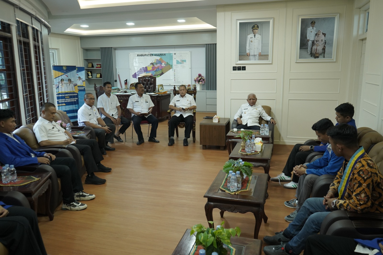 , Asahan – Pimpinan Cabang (PC) Pergerakan Mahasiswa Islam Indonesia (PMII) Asahan melakukan audiensi dengan Bupati Asahan H. Surya, BSc di Ruang Kerja Rumah Dinas Bupati Asahan, Rabu (20/12/2023). Dalam audiensi ini tampak hadir Kadis Kominfo Kabupaten Asahan, Kadis Pendidikan Kabupaten Asahan, Kabag Protokol Setdakab Asahan dan Ketua PC PMII Asahan beserta pengurus.