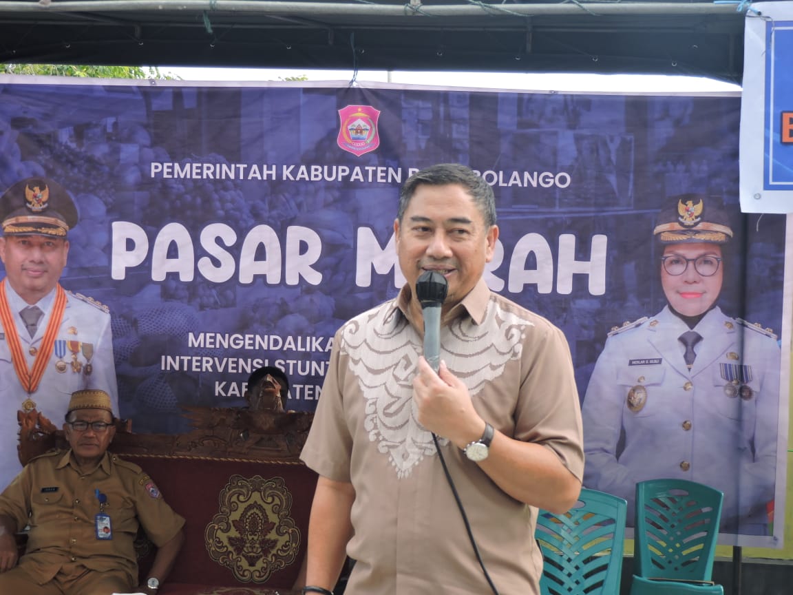 , Bone Bolango – Pemerintah Kabupaten Bone Bolango (Bonebol) melaksanakan program pasar murah bersubsidi di Kecamatan Kabila Bone pada Selasa (11/04/2023). Bupati Bonebol, Hamim Pou, mengatakan bahwa program pasar murah ini diadakan untuk membantu masyarakat yang membutuhkan uluran tangan dari pemerintah dan juga untuk menurunkan angka stunting di kecamatan tersebut.